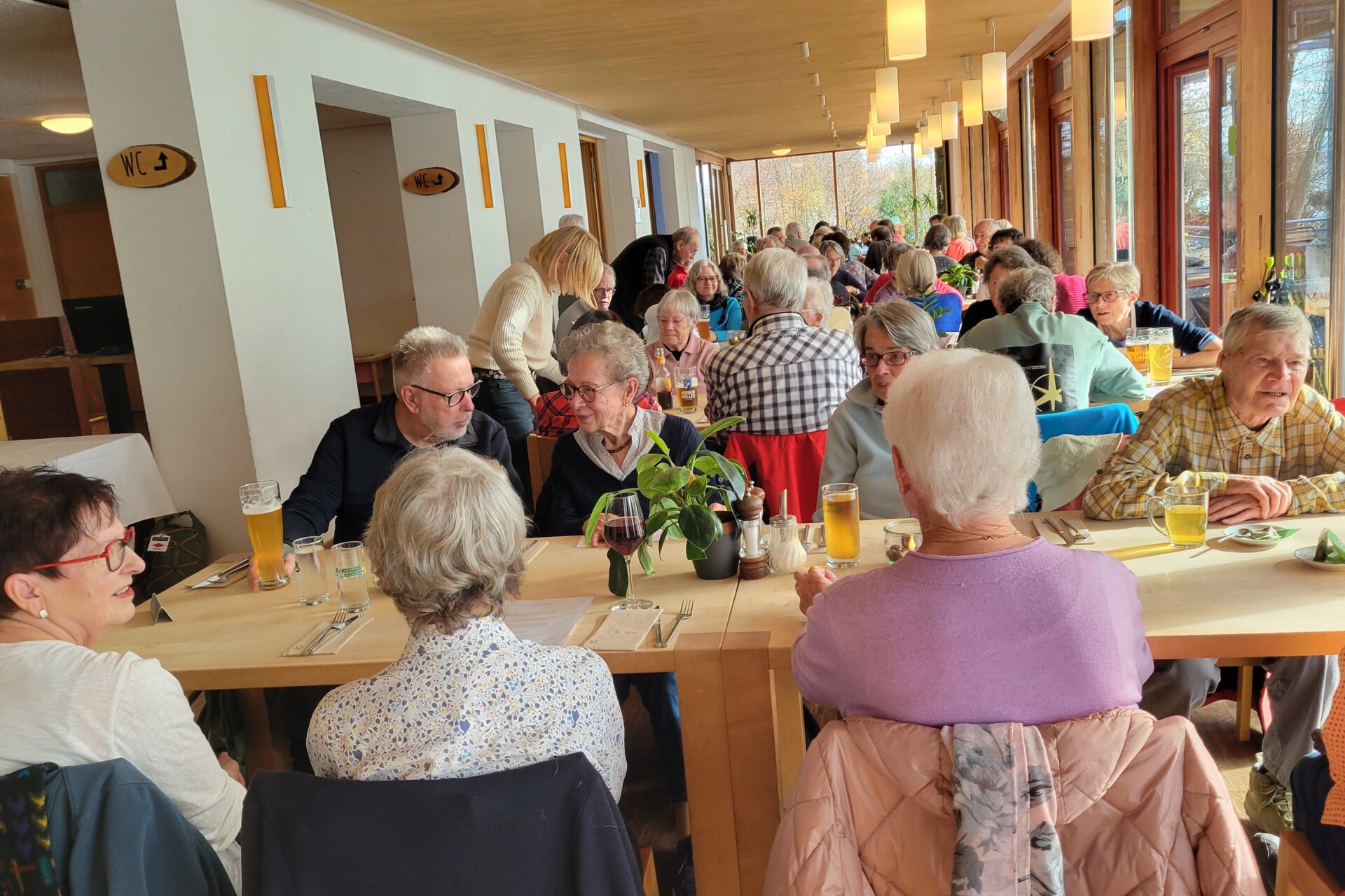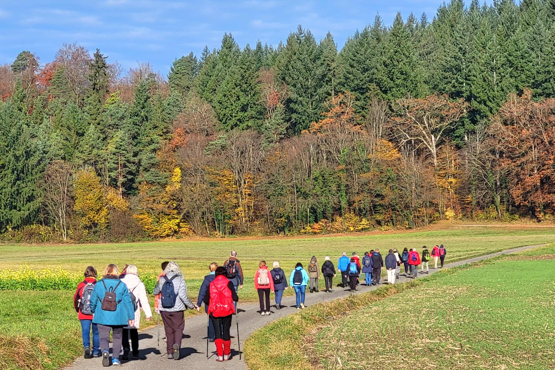 Angelika Supan und Herbert Grasl wollten eigentlich nur den Gaststättenbesuch im Naturfreundehaus Bodensee organisieren, als sie sich überraschend als Wanderführer von 62 Wanderern wiederfanden.