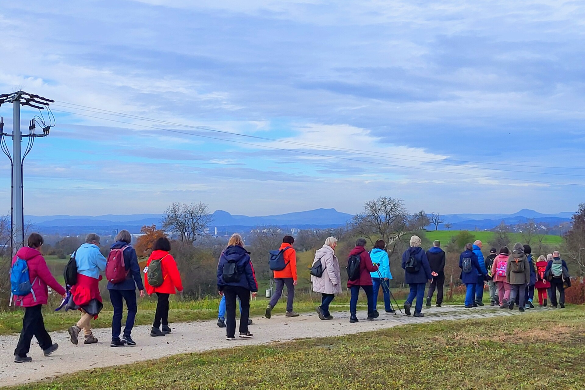 An Eseln und verwunderten Schafen vorbei gab es am Aussichtspunkt „Württembergle“ einen herrlichen Blick auf Säntis, Mettnau und Untersee.