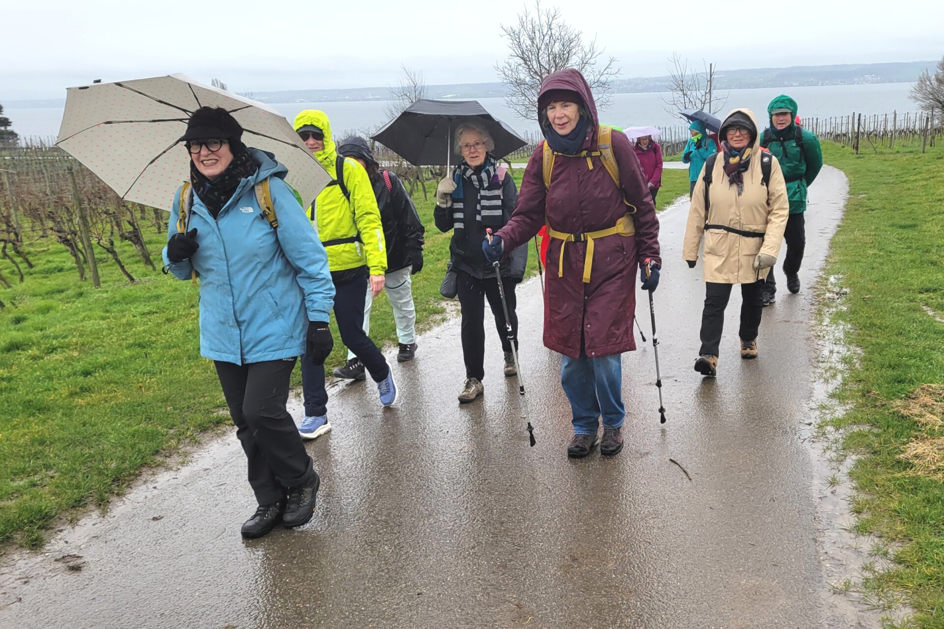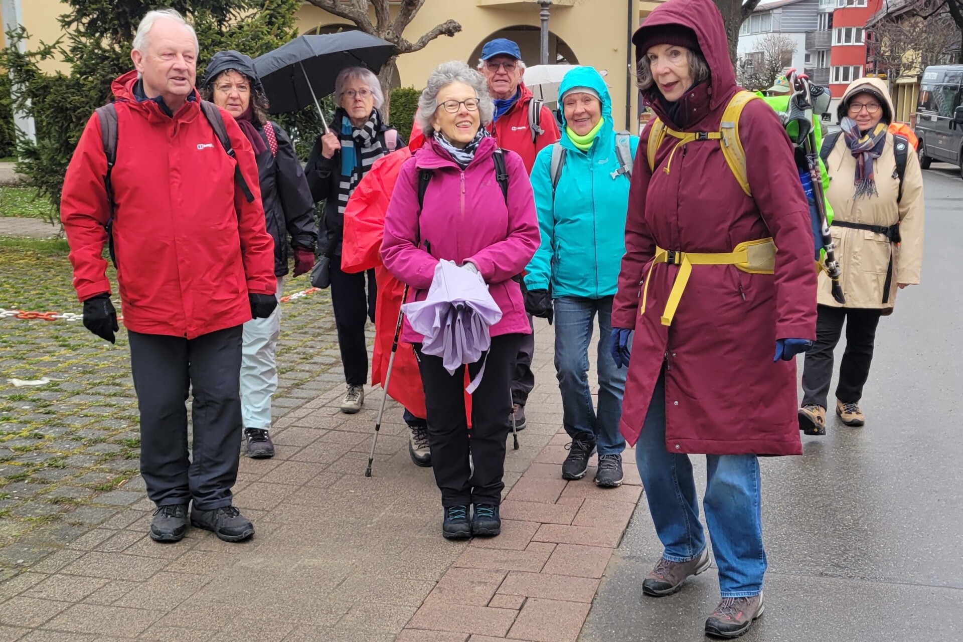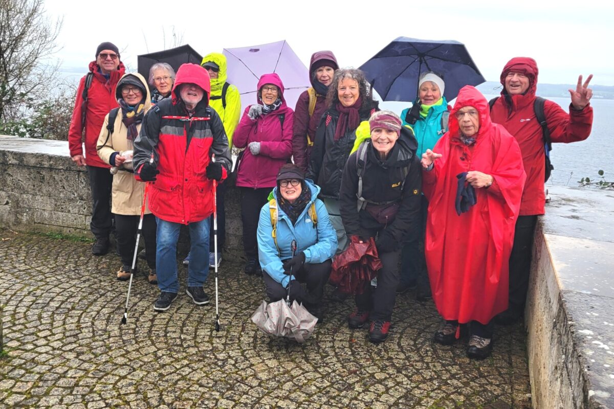 Vierzehn unerschrockene Wanderer, die sich trutzig der seit Tagen eigentlich entmutigenden Wetterprognose entgegenstellen wollen, sind an einem wolkenverhangenen Samstagvormittag nach einer kurzen Fahrt mit dem Städtebus bis nach Immenstaad dabei, um gemeinsam mit Raimund, den erfahrenen Berggänger, auf seiner „Jungferntour“ für unseren Verein gespannt wie ein Flitzebogen zu begleiten.