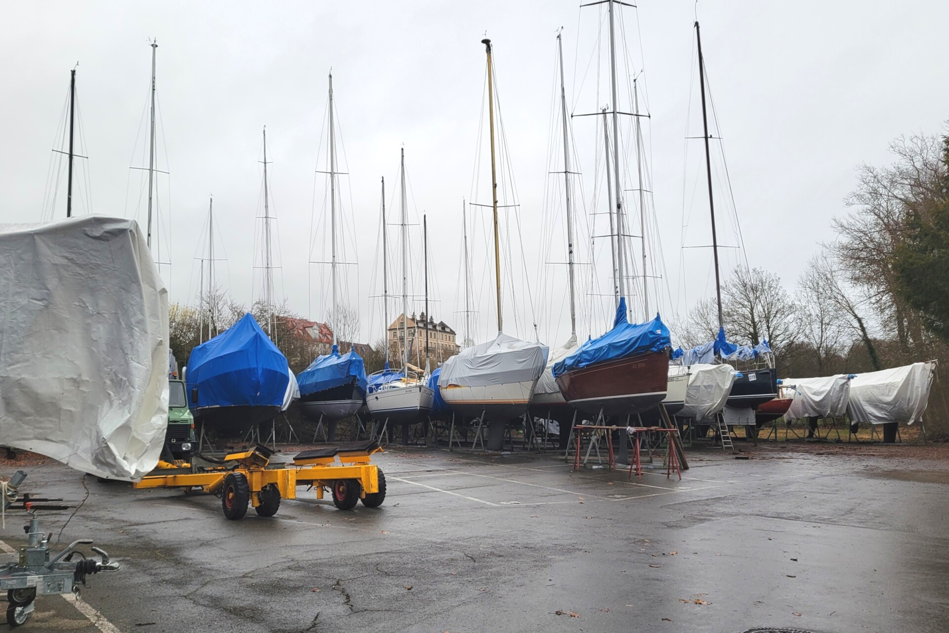 Nach dem Ausstieg am Rathaus gehen wir bereits im leichten Nieselregen direkt zum Wasser hinunter und treffen hier auf den Bodenseewanderweg, der uns die ganze Zeit entlang am Ufer begleiten wird. Daher sind wir bald am Städtischen Freibad und erreichen kurz danach auf schmalen Pfaden, eingezäunt zwischen pflegeleichten grünen Thuja-Hecken (Lebensbäume), das Kippenhorn. Mit einem Blick nach oben auf die schräg abfallenden Weinstöcke, erkennen wir an der schneeweißen und damit weithin sichtbaren Außenfassade das Schloss Kirchberg, das 25 Meter über den Bodensee thront und den größten Teil seiner Geschichte dem Kloster Salem als Gutshof diente und dessen Äbte es als Nebenwohnsitz nutzten.