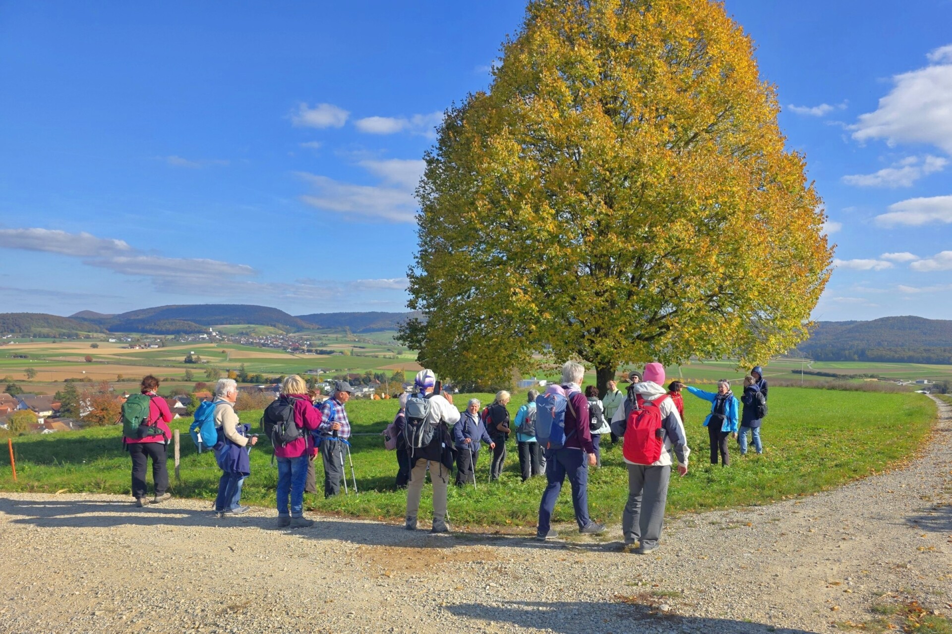 Bei strahlendem Sonnenschein kamen 24 Wanderer unter der Leitung der Wanderführerinnen Andrea und Monika mit dem Zug über Singen und Schaffhausen in Wilchingen-Hallau erwartungsvoll in der Schweiz an.