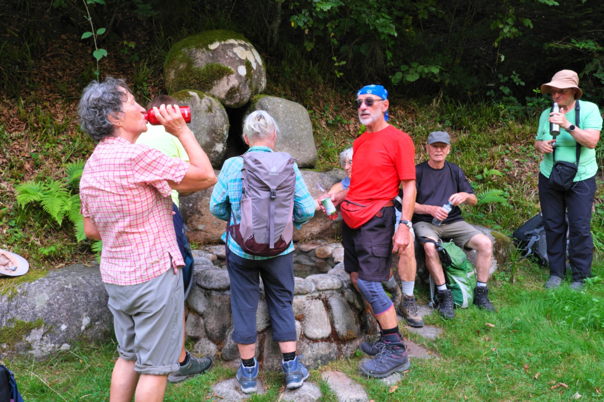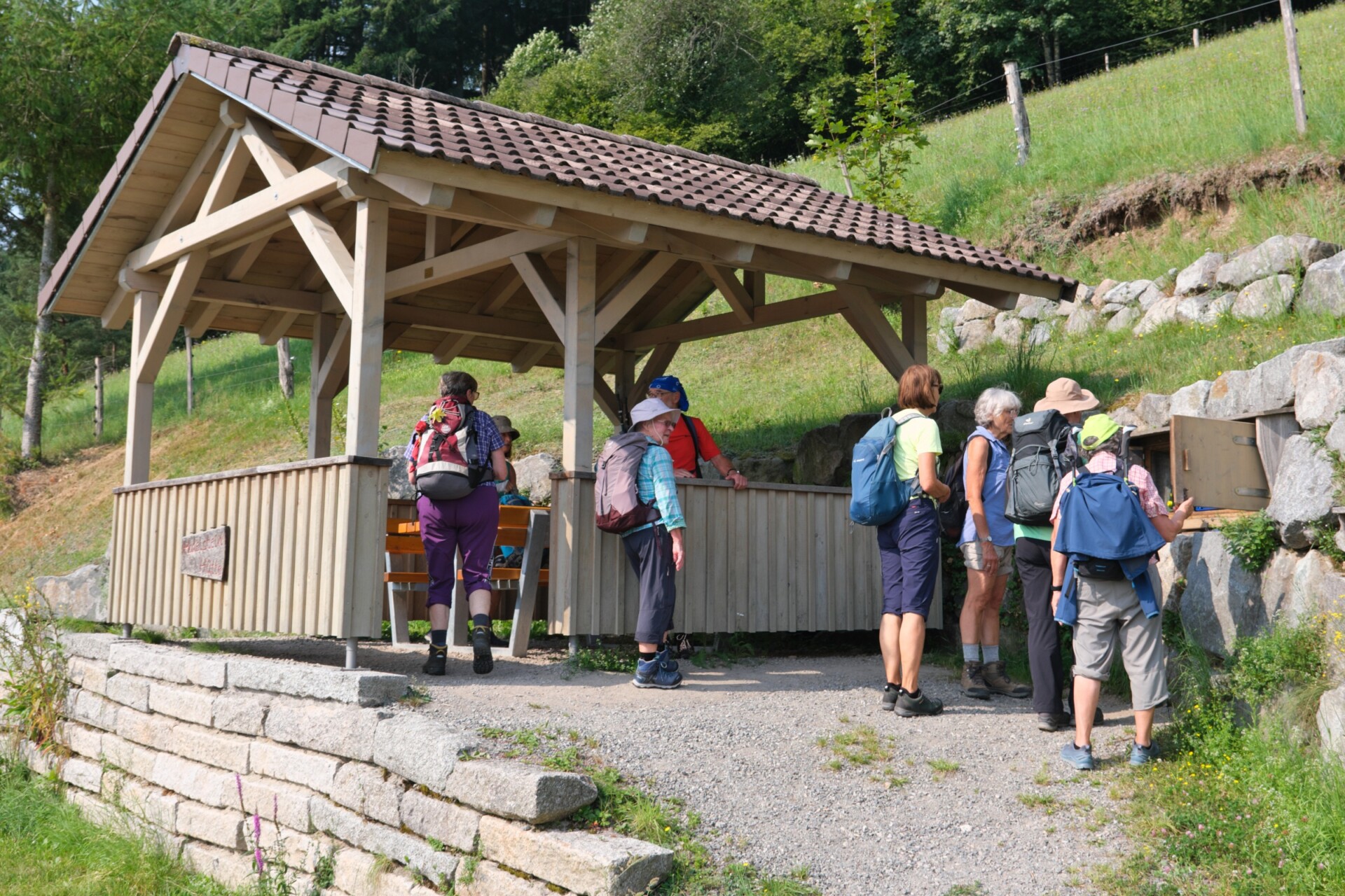 Bevor es für uns selbst anstrengend wurde, gönnten wir uns eine erste Rast an der offenen Hodelsteinhütte. Der Natur-Kühlschrank bot erfrischende Getränke – genau das Richtige vor dem steilen Anstieg. Der folgende Weg hinauf zur Hasemann-Hütte auf dem Farrenkopf (790 m) forderte unsere Kondition. Kein Wunder, dass dieser Gipfel den Beinamen „Rigi des mittleren Schwarzwalds“ trägt.