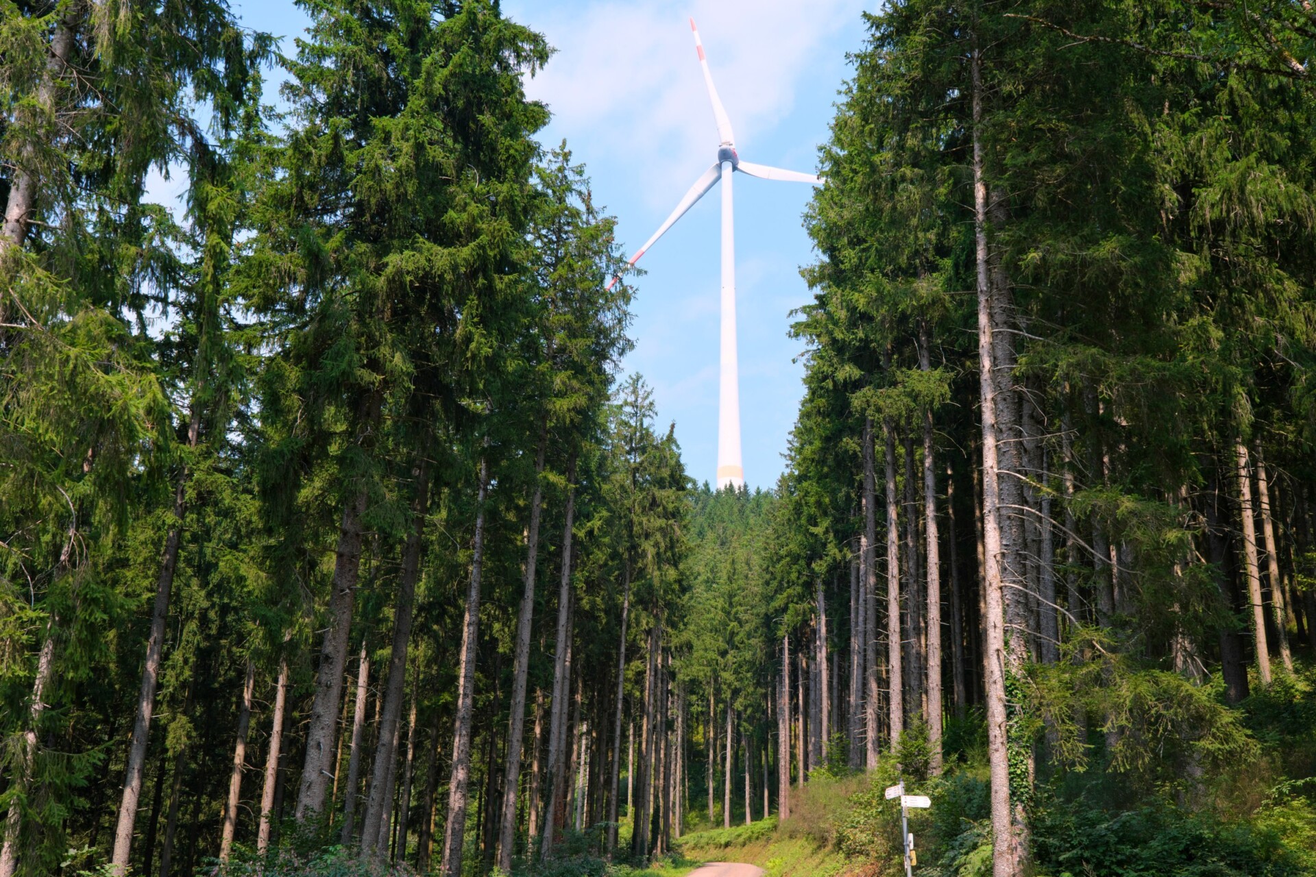 Nach der verdienten Pause und einem kurzem Abstieg führte uns der Weg wieder bergauf zum Büchereck, der Passhöhe zwischen Oberprechtal und dem Gutachtal. Unterwegs zählten wir eine ganze Reihe Windkraftanlagen: zehn bereits bestehende und drei neue, die aktuell errichtet werden. Sie prägen nicht nur das Landschaftsbild, sondern führen auch zu Umleitungen des Westwegs. Im Winter warnen hier automatische Anlagen vor Eisabwurf.
