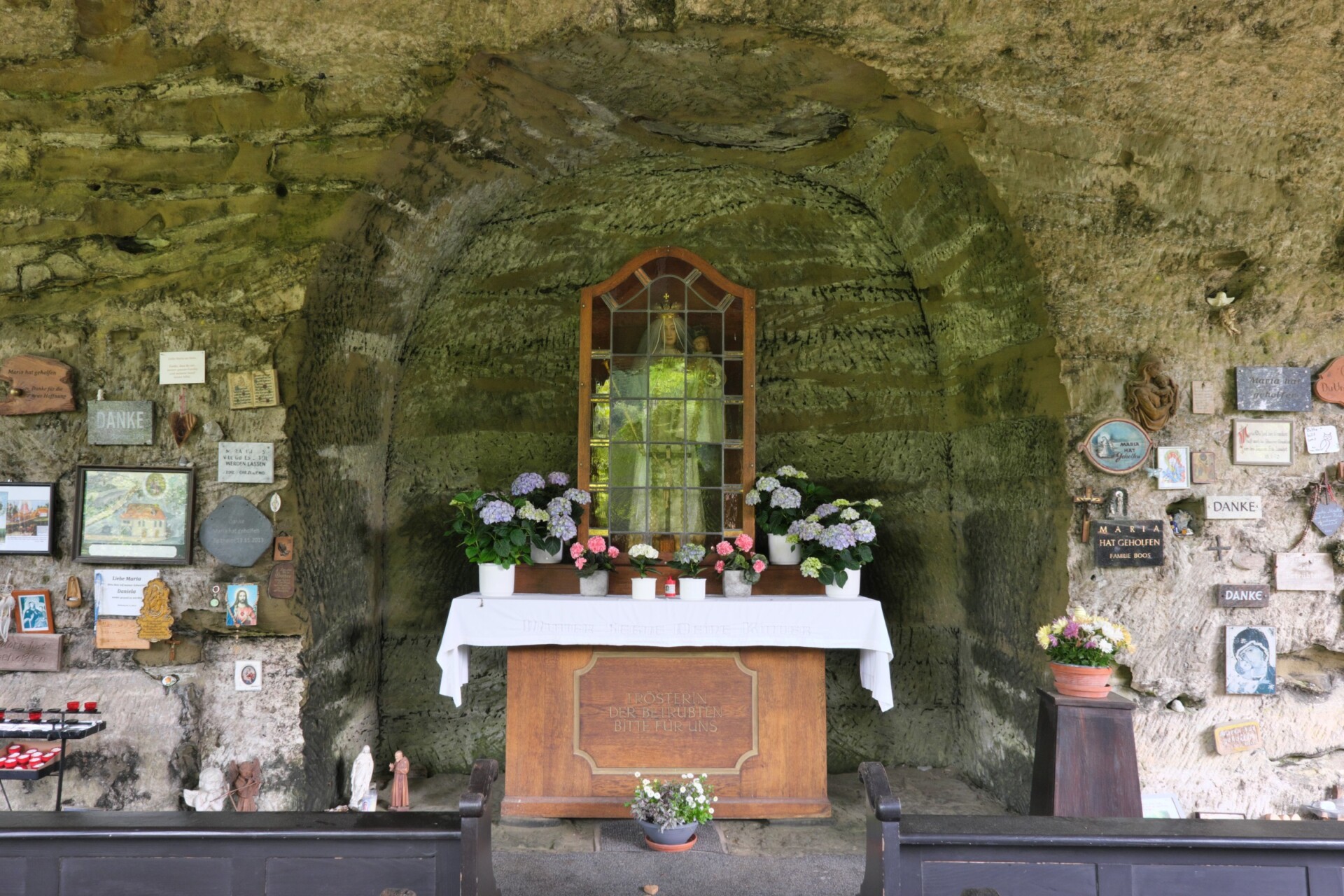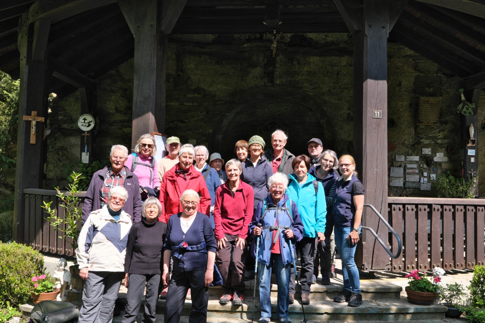 Mit dem Linienbus ging es kurz nach Altheim, unserem Ausgangspunkt für die Wanderung nach Owingen. Wir starteten auf dem „Jubiläumsweg Bodenseekreis“ und kamen über den Elisabethenhof und den Steinhöfen zu unserem Ziel, der Wallfahrtskapelle „Maria im Stein“, einer über 500 Jahre alten Wallfahrtskapelle, welche im Naturschutzgebiet Aachtobel unterhalb der Steinhöfe, im Gebiet des zu Überlingen gehörenden Dorfes Lippertsreute liegt.