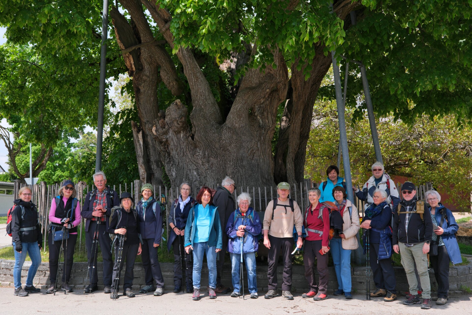 Nach der Mittagspause machten wir uns auf schönen Wanderwegen auf den Weg nach Owingen, unserem Endziel der heutigen Wanderung. In Hohenbodman machten wir einen kleinen Halt bei Deutschlands ältester Linde (ca. 1000 Jahre), auch als Hohenbodmaner Linde bekannt. Leider ist die Linde durch menschliches Zutun stark beschädigt und dürfte nicht mehr lange leben.